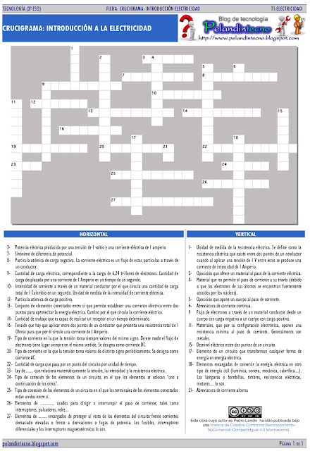 Ficha Crucigrama Introduccion A La Electricidad
