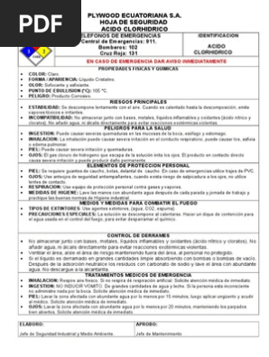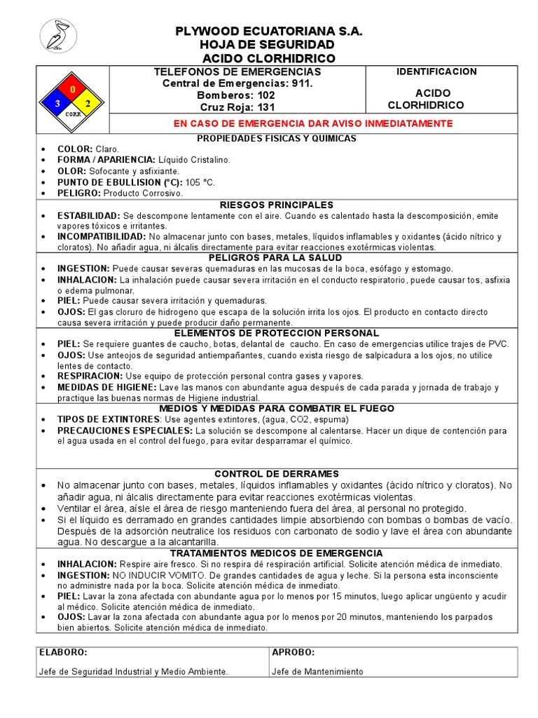 Hoja De Seguridad Acido Clorhidrico Doc Agua Sustancias Quimicas