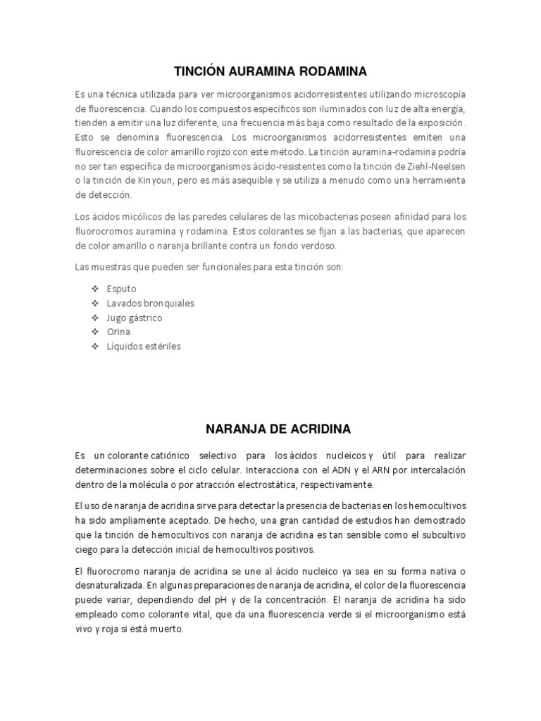 Tincion Auramina Rodamina Docx Tincion Ciencias De La Tierra Y