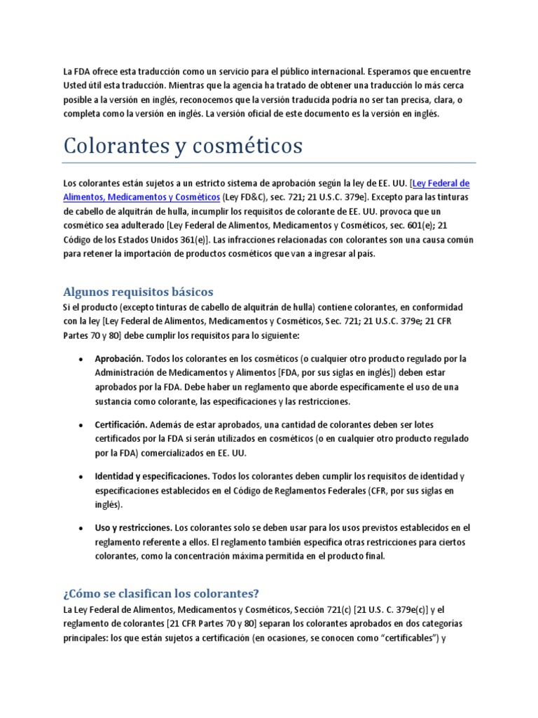 Color Additives And Cosmetics Spanish Productos Cosmeticos