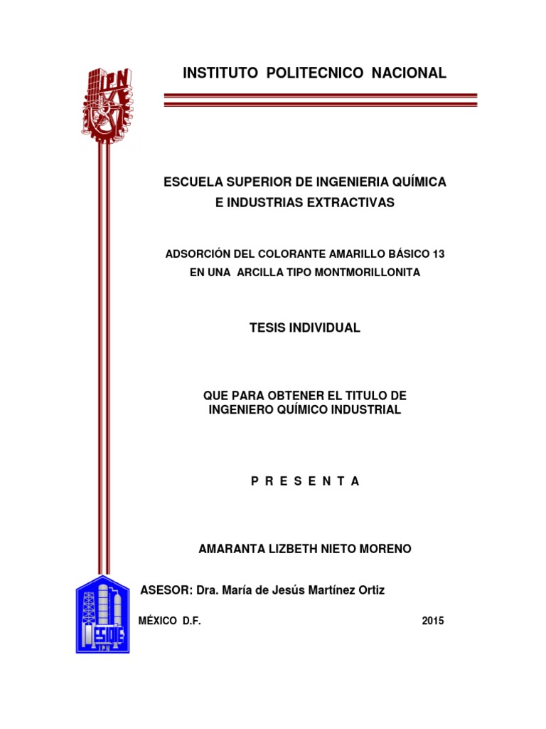 Adsorcion Del Colorante Amarillo Basico 13 En Una Arcilla Tipo