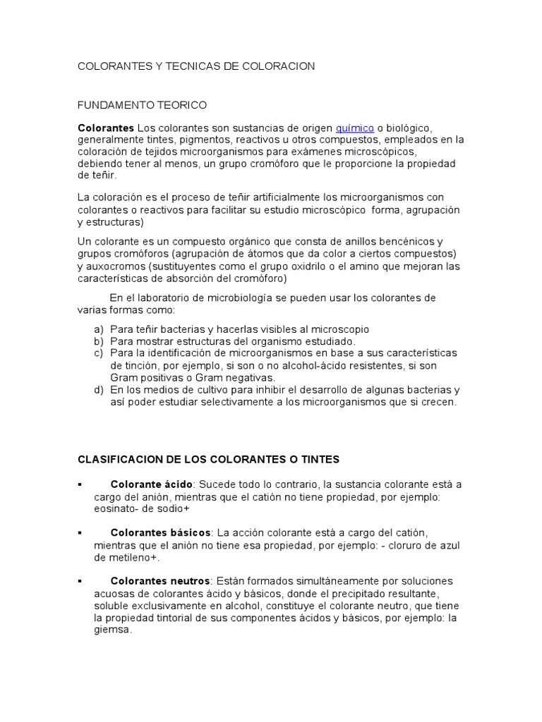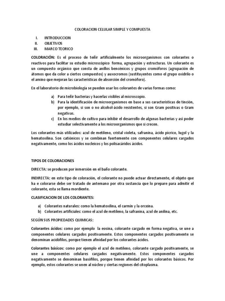 Coloracion Celular Simple Y Compuesta Docx Tincion Microscopia