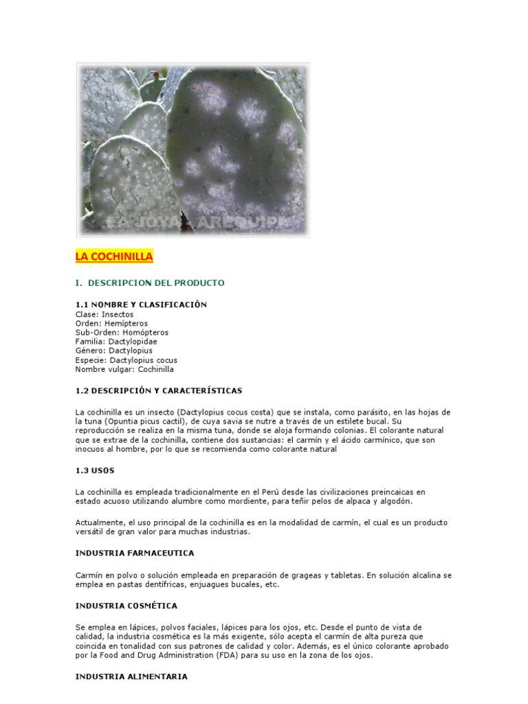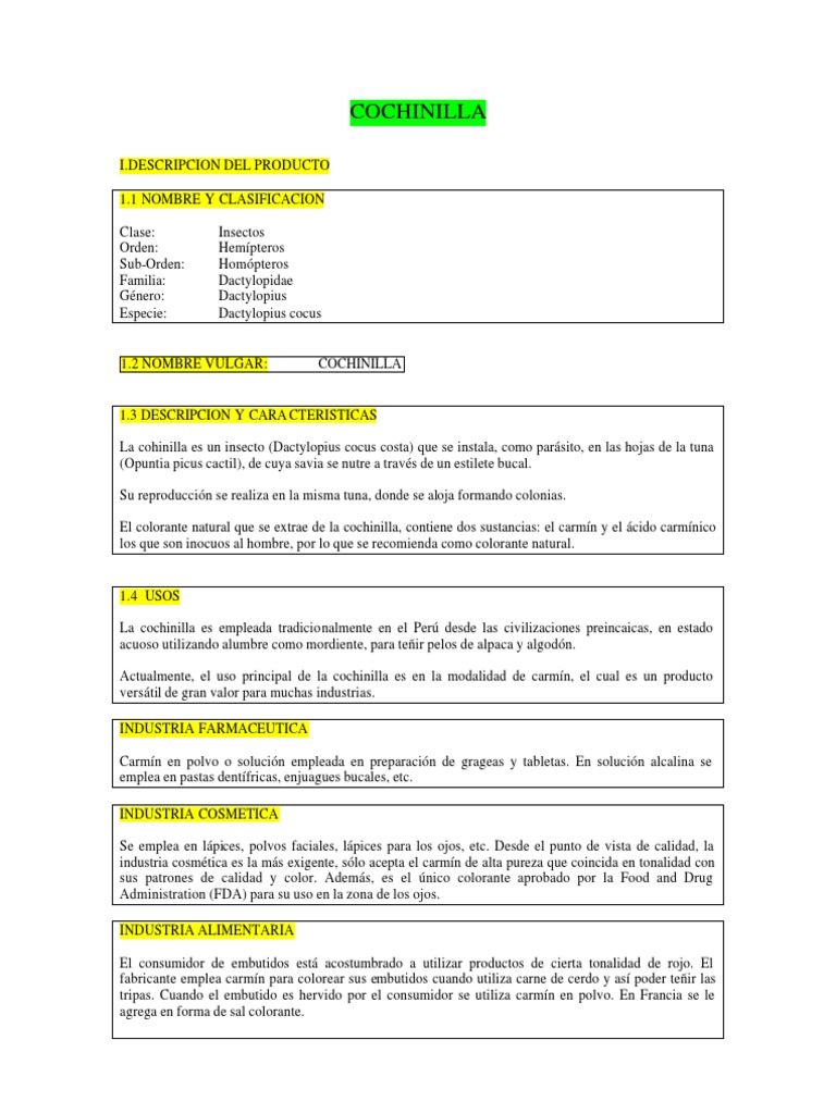 Ficha Tecnica De La Cochinilla Alimentos Naturaleza Prueba