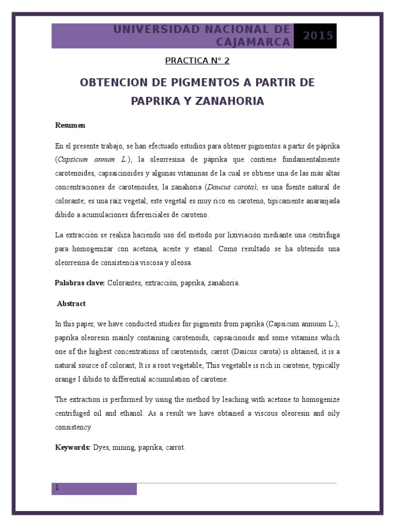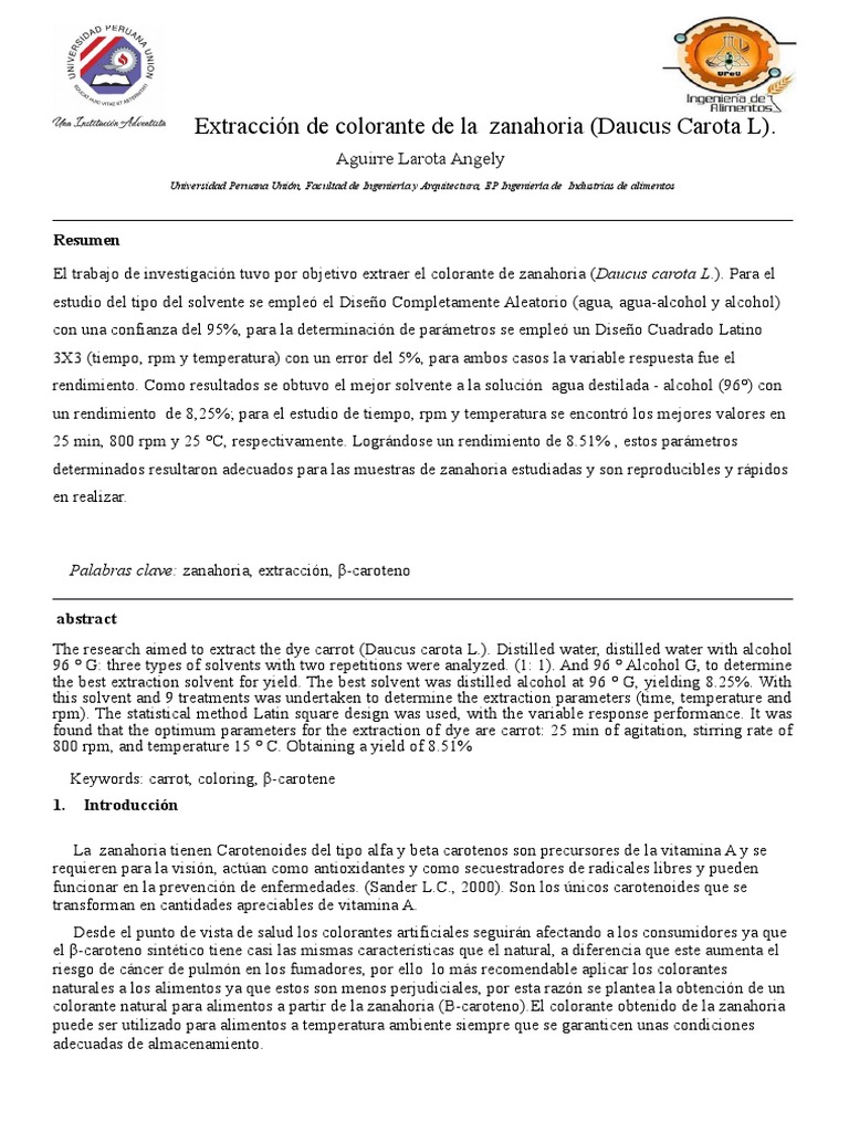 Extraccion de colorante de zanahoria. Se abusó tanto de su recolección que casi quedó extinguida. Extracción de colorante a partir de la flor de jamaica página 1 i. Diagrama de flujo para la obtencin de colorante a partir de zanahoria. 10 si a una zanahoria se le extraen sus pigmentos por medio de lavados entonces se podrán extraer los naturales que le dan coloración por medio de carotenos de la zanahoria y después a estos por medio disolventes orgánicos y después al obtener estos se de cromatografía de adsorción en columna se podrán realiza una separación de los pigmentos constituyentes separar en sus tres tipos.