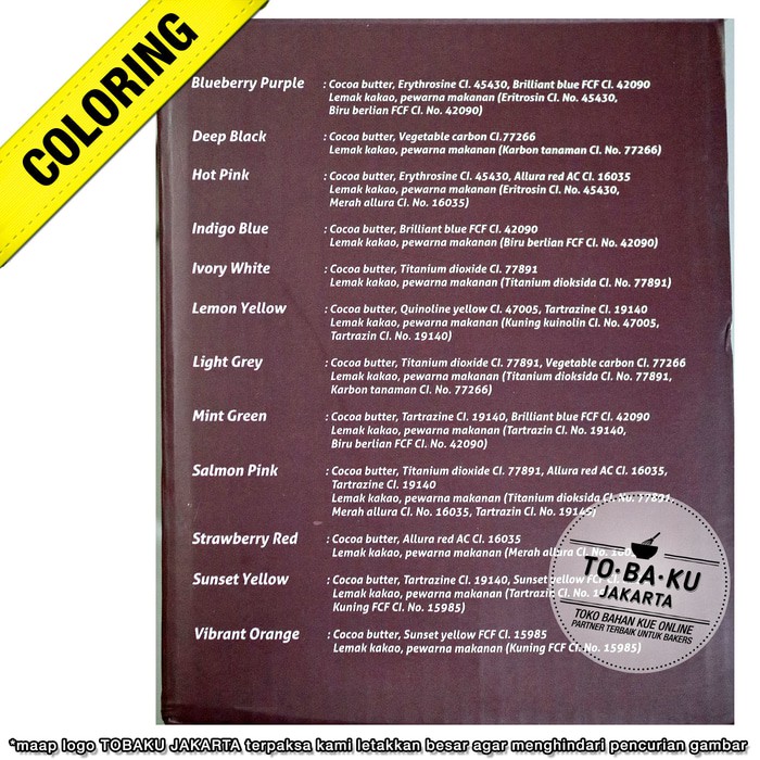 Jual Pewarna Makanan Indocol Tartrazine Ci 19140 Jakarta Pusat