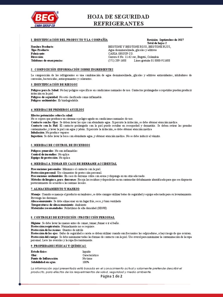 Hoja De Seguridad Refrigerantes Agua Residuos Free 30 Day