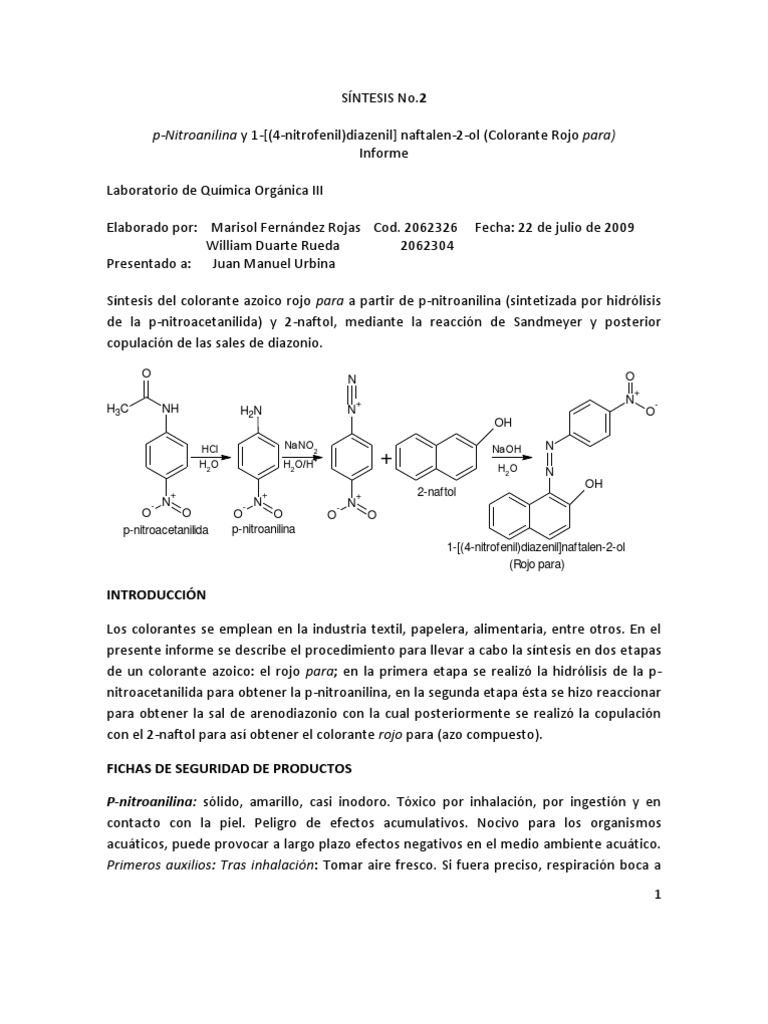 Sintesis No 2 Rojo Para Hidrolisis Benceno
